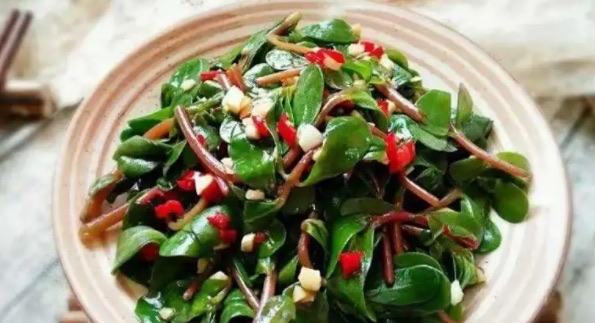 2、凉拌马齿苋:将马齿苋洗净,焯水至熟软,捞出后过冷水,沥干水分。可以根据个人口味加入蒜末、辣椒油、酱油、醋等调料进行拌匀,即可食用。