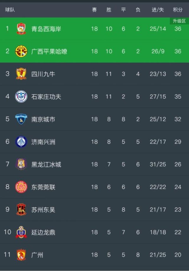 中甲联赛第18轮战罢,积分榜榜首罕见地出现三支球队同积36分的局面。广西平果哈嘹、四川九牛和青岛西海岸三队并列第一,争冠形势异常激烈。