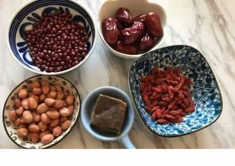 五红汤都有什么材料,主要是有红豆.枸杞.红枣.红糖.红皮花生。