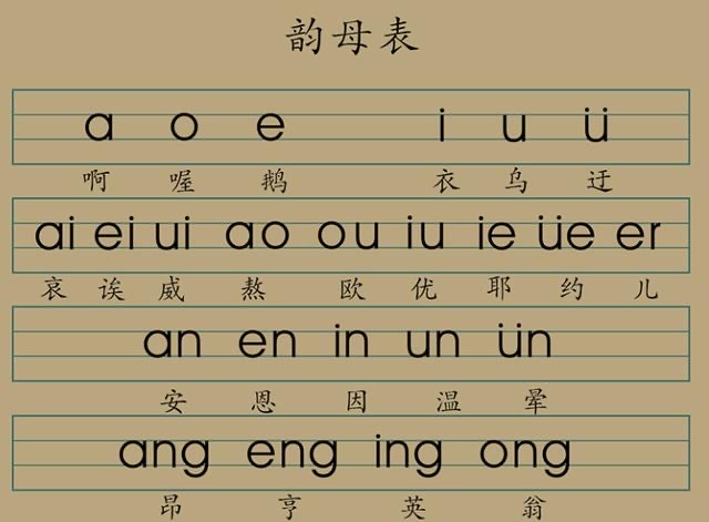 a[阿] o[喔] e[鹅] i[衣] u[乌] ü[迂]