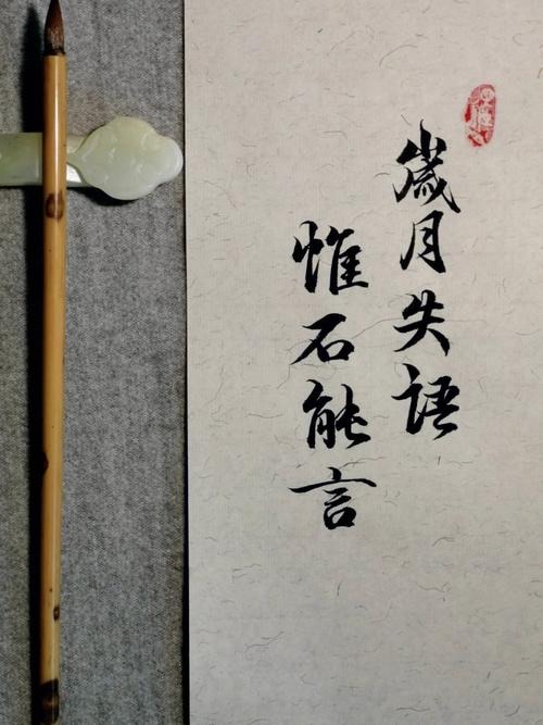 “岁月失语,惟石能言”意思是:岁月总是无声的走过,一直到生命的尽头,并不能留下什么。只有石头能深深的体会到岁月的流逝,并诉说着历史见证下的真言,让我们感知它的伟大。