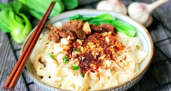 油泼面是郑州的一道传统特色面食,以面条煮熟后,撒上热油和其他配料,吃起来热辣爽口。