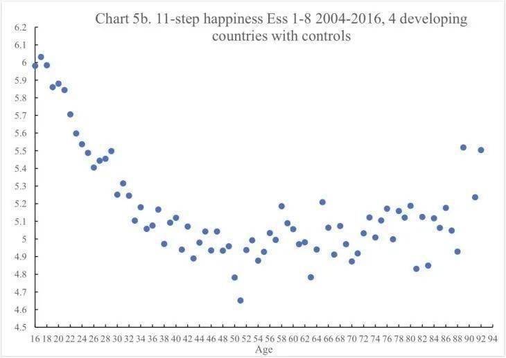 2008年,英国经济学教授奥斯瓦尔德提出了“U型幸福曲线”,这项基于几十个国家、包含数十万人的巨大数据集的研究结果表明,随着年龄的增长,人一生中的幸福感水平呈现出“U型曲线”,幸福感大约在中年时最低。