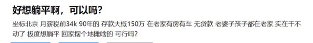 某乎上有位90后在北漂的男子,好想躺平,所以向广大网友寻求肯定。