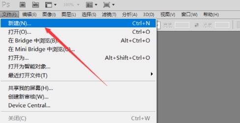 2.在弹出的ps下拉菜单中,直接单击[新建]选项。