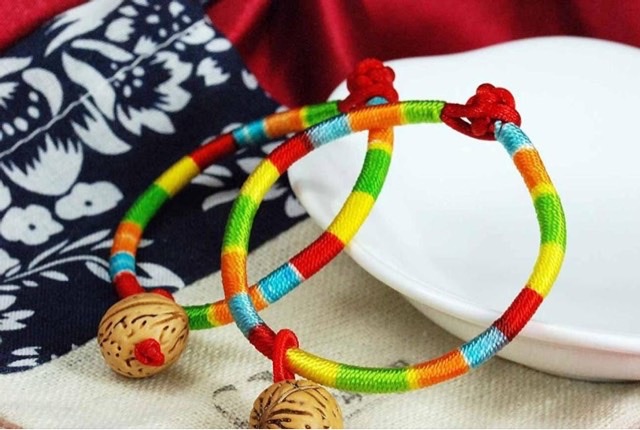 也有人将传统的五色彩绳编成绳索,配以银锁缠绕与儿童的手臂上。以前每逢端午节时,家家户户的门楣上,都悬挂上五色的彩绳,这些美好的装饰可以抵御恶气。