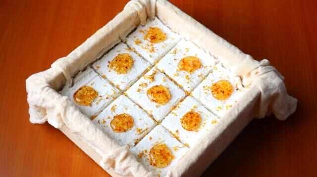 桂花糕是安徽徽州的传统小吃,历史悠久,深受人们喜爱。[bai]徽菜桂花糕选用优质糯米粉、糖、等原料,加入适量的桂花和调料,经过蒸制、冷却等工艺,制作出软糯、甜美的糕点。其外观呈椭圆形,口感丰富,是徽菜中的一道美食。#花果婚#