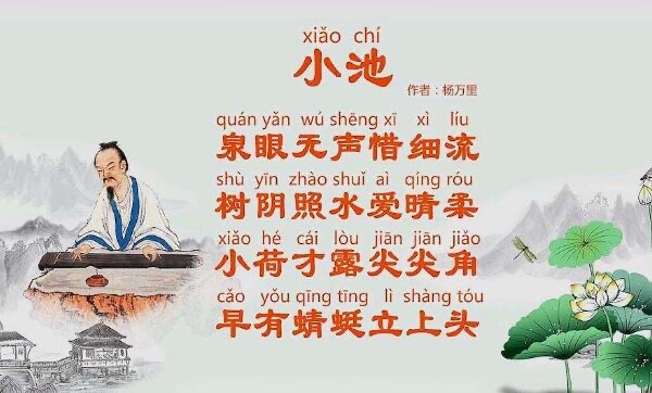 1、大诗人:杨万里是南宋非常著名的一位诗人,一生作诗25000多首,可惜流传下来的很少,《小池》就是其中之一。杨万里在诗坛中占有极其高地位,堪比唐朝的王之涣、王维等人。