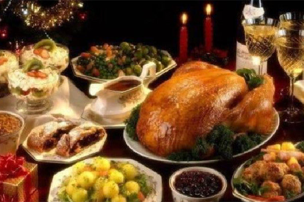 火鸡:火鸡的吃法有一定讲究。火鸡需要整只烤出,鸡皮烤成深棕色,肚子里还要塞上许多拌好的食物,如碎面包等。端上桌后,由男主人用刀切成薄片分给大家,然后由自己浇上卤汁,撒上盐,味道十分鲜美。