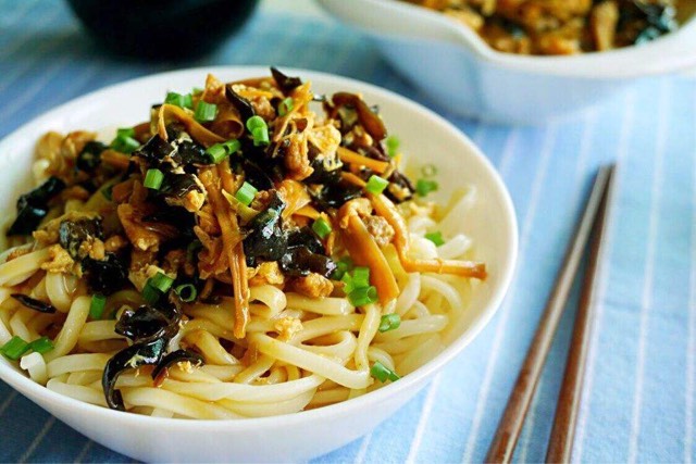 食材:西红杮 / 鸡蛋 / 干香菇(先泡发)/干木耳 (先泡发)/ 干黄花菜 (先泡发)/ 口蘑/五花肉/ 手擀面 / 大葱 / 姜 /蒜 / 大料 / 花椒 / 淀粉 / 生抽 /老抽 / 料酒 / 糖 / 蚝油 / 盐 / 黄小厨订制金龙鱼油茶籽油