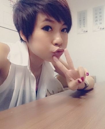 蓬松的波波头短发发型,超级可爱的,厚厚的齐刘海下面,衬托出水灵灵的大眼睛,很小清新哦!
