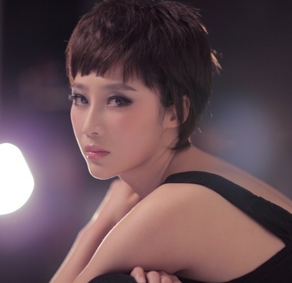 超短超短的女生短发,九分的造型,脸颊两边留些许的头发,这样看起来更加的时尚。