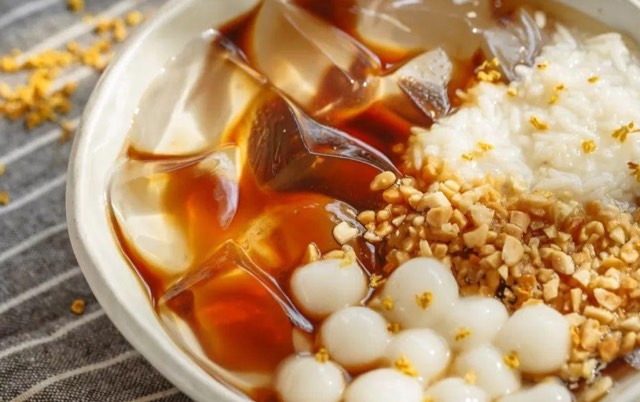 冰粉是以冰粉籽为主要原料制成的传统小吃。正宗制作过程包括将冰粉籽用纱布包裹,在水中反复揉搓出胶质,过滤后加入石灰水静置凝固,最后搭配红糖水、水果等食用,口感清凉爽滑。