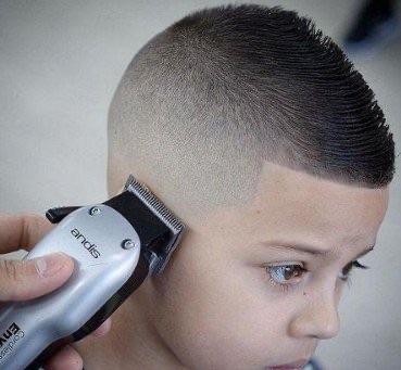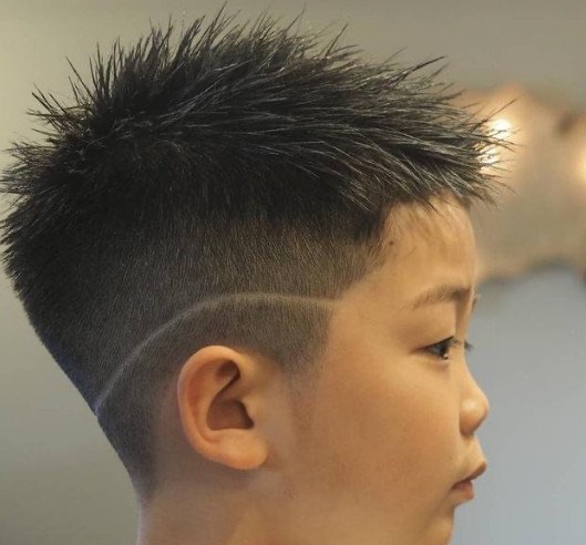 这款也是很多家长很喜欢的发型,两侧和脑后腿短,头顶全部打薄,特别显精神帅气。而且周边用电推推出来的干净利落的效果和头顶凌乱的碎发还能够形成对立,增加立体感。而想要保持这种小毛刺的感觉,就需要用一些保湿的啫喱膏来进行打理了。另外,这种发型最好的修剪频次是15到20天左右一次。