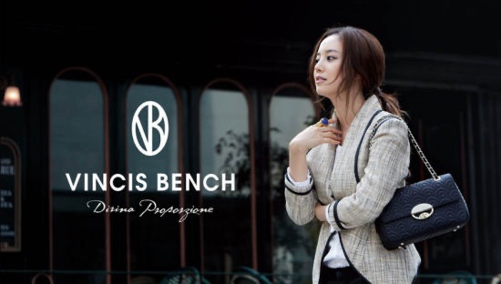 VINCISBENCH是现代与古典相结合的欧洲品位时尚配饰品牌,其含义为"列奥纳多达芬奇的椅子"。它的稳重感与皮革的柔和感完美结合,既实用又具干练美。在这里用金色VINCISBENCH品牌标志加以点缀,与各种颜色相结合尽显经典、高贵的风格。VINCIS BENCH把欧洲感性与韩国风情完美结合,更加提升了其品牌的价值。