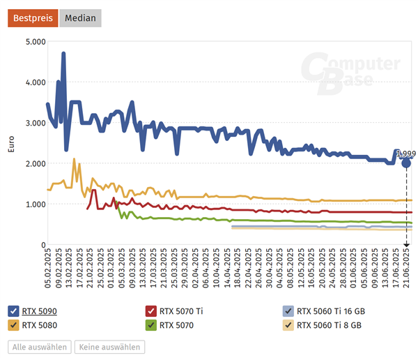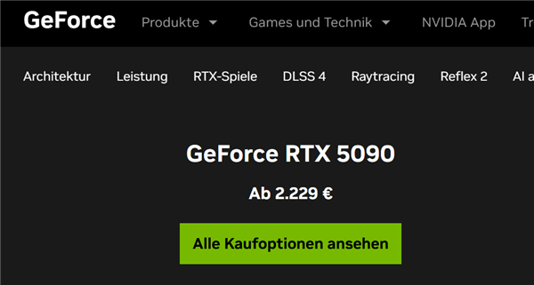 RTX 5090在德国等欧洲地区的首发价为2339欧元起,最初因为奇货可居,一度炒到接近5000欧元。