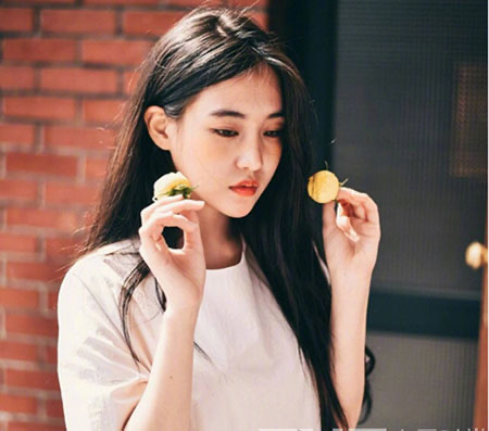 同样是一款黑色中长发,比起上一款这款会更加符合校园女神气质,一头黑色中长发+中分+白色T恤,轻轻松松吸众人眼球。