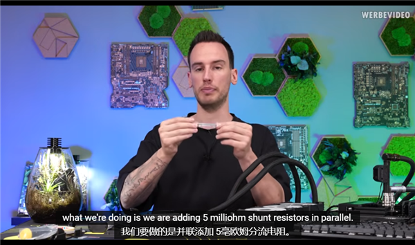 但der8auer在其基础上进行改装,进一步挖掘了这款显卡的潜力,将5毫欧分流电阻并联到GPU的板载2毫欧电阻上。