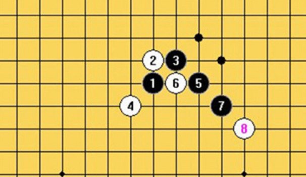 5、而如果黑棋选择做活现有棋子的话,白棋就只能走8的位置。