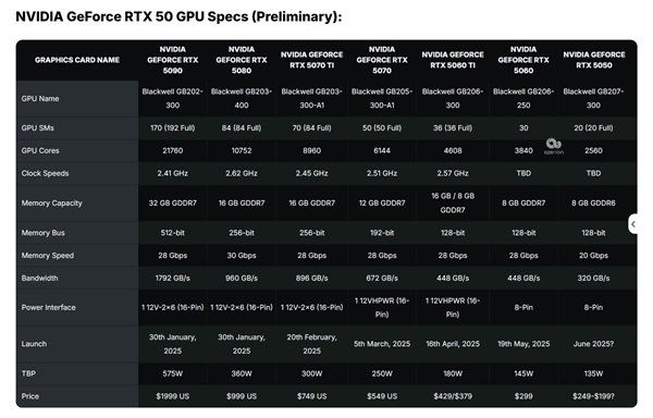 RTX 5050发布之后,50系列显卡就来到了7款,但大陆市场只能买到6款(买不到5090):