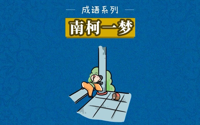 相传唐朝有一个人叫淳于棼,特别喜欢喝酒。有一天,他在门前槐树下摆宴,喝多了被朋友扶到廊下休息。此时,淳于棼恍惚间,被人扶上马车,奔向槐树下的树洞中去。洞中的城门上写着“大槐安国” ,街道很繁华。下车后,有丞相迎接他,并说国君要将公主嫁给他,并让他做南柯郡太守。20年后,檀萝国攻打大槐国,淳于棼率兵征讨,战败同时公主也病逝了,淳于棼深受打击,辞官回乡。出洞后,淳于棼看到自己躺在廊下,就被吓醒了,只见两个朋友在一边洗脚,便将梦中的一生告知他们。于是,大家一起找到大槐树,挖开后看到一个蚂蚁洞,一旁还有一个小蚂蚁穴。