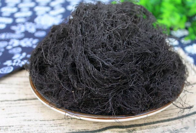 发菜为藻类植物门植物发菜的藻体。发菜贴在于荒漠植物的下面,因其形如乱发,颜色乌黑,得名“发菜”,也被人称之为“地毛”。是一种极名贵的食物,素有“戈壁之珍”美誉。因发菜是藻类的一种,藻体细长,黑绿色,呈毛发状,由多数单细胞个体连成长串,埋没在胶状物质中而形成。主要分布于我国宁夏、陕西、甘肃、青海等地的溪流中。市场上见到的为它的干制品。