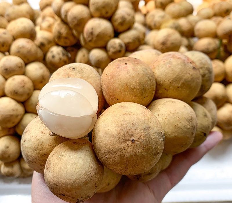 泰国特色龙宫果,精选果,气味与龙眼相似剥皮即食,果肉浊白,味道醇美,甜中微酸,口感有点像荔枝,但果肉更有质感一些,水分更多,酸甜可口,据说是泰国王妃最爱的水果。