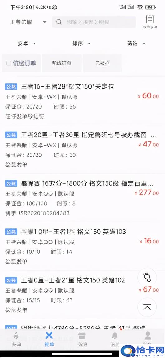 从代练平台订单的截图里看,订单固然很多,但是详细到每个订单里,低于王者的段位,打一颗星费用6块钱,一个段位不到40块钱,而且这些订单还有保证金和时间的请求,假如不能按时按量的完成任务,还会被发双方请求赔偿。