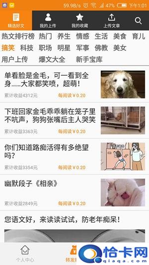 先来理解下,为什么转发文章到微信上能赚钱?我们下载这种APP平台之后,里面有各种文章。分享某个文章到微信上(微信群、朋友圈)只要有人点击,阅读了你的文章。那么就能得到收益,一个人也就是一台手机,能给你带来1-4元的收入,假如你能做到一天有100个人阅读,那就有100-300元!
