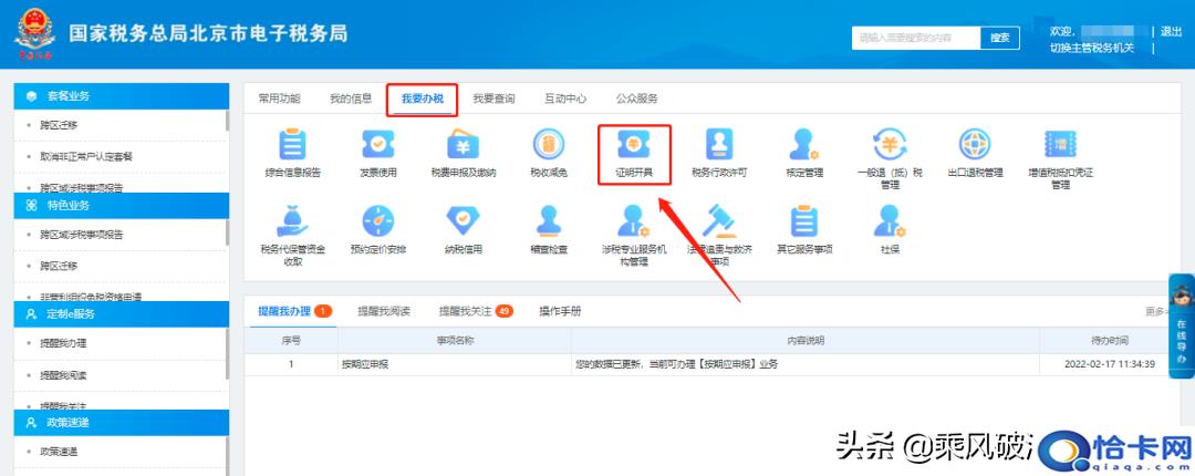 一、我要办税—证明开具。