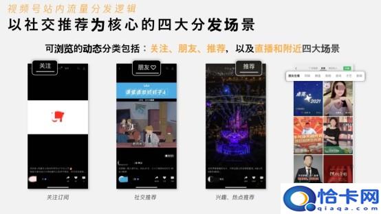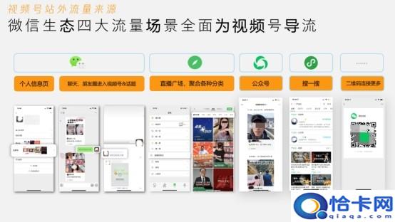 视频号可经过站内的关注、朋友、引荐、直播和左近等四大场景引流,还可经过微信生态内个人信息材料页、聊天窗口&朋友圈、直播广场、公众号、搜一搜等场景引流。