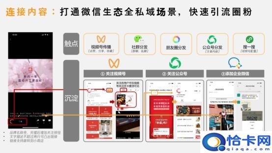 视频号能够衔接内容,打通微信生态内社群、朋友圈、公众号、搜一搜、企微等各个模块。