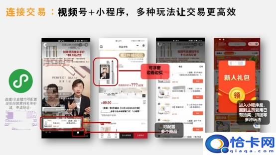 视频号能够衔接买卖,经过小程序和小商店,全面打通直播带货买卖链路。