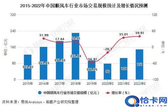易观数据显现,2015-2018年上半年,顺风车行业得到快速开展,2018年全年买卖范围超越200亿元,到达232.14亿元。2019年,顺风车行业整体停止整改,市场逐渐重启,全年买卖范围达100.25亿元。据预测,到2022年顺风车市场买卖范围将回归快速增长轨道,到达151亿元左右,相比2020年增长超71亿元。