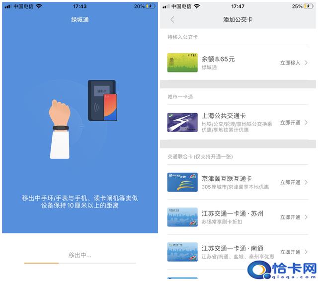 作为小米手环4NFC版的用户,能不能移卡也是最值得关注的问题之一。经过测试得出的结论时:不只支持小米手环3,4和5代的NFC版互相移卡,并且移卡过程十分简单:找到卡片—选择并肯定移除卡片就能够了。当连上新手环时,就能看到等候移入的公交卡,一键就能将该卡移入。PS:本次测试的是郑州的绿城通,从小米手环4NFC版移入到小米手环5NFC版。
