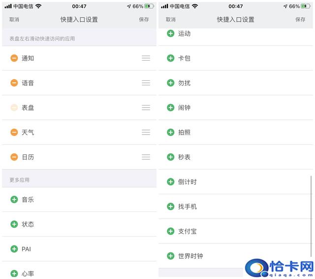在表盘状态下,向右滑动照旧是呼出小爱同窗,向左滑动不再是支付宝二维码,而是晋级为快捷方式。截止到目前,能够添加的快捷方式有通知,天气,日历,运动,卡包、拍照和时间时钟等23个快捷入门,大大提升了用户的运用体验。