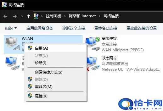 关于运用WLAN衔接上网的朋友,小A提示大家能够查看电脑能否禁用了WLAN,步骤如下:开端菜单→设置→更改适配器选项→WLAN,此时假如图标显现已禁用,我们只需右键启用即可。