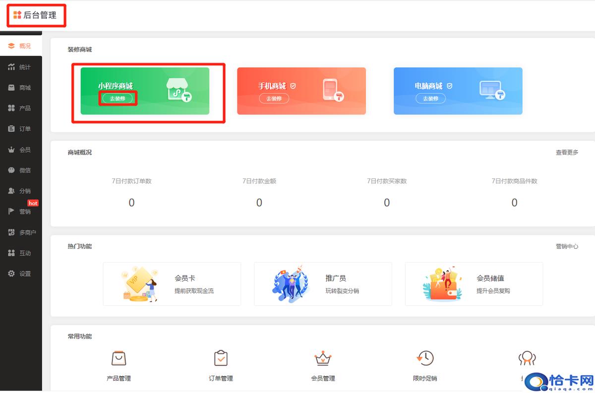 在后台管理页面,点击【小程序商城】中的【去装修】进入小程序商城的制造页面。