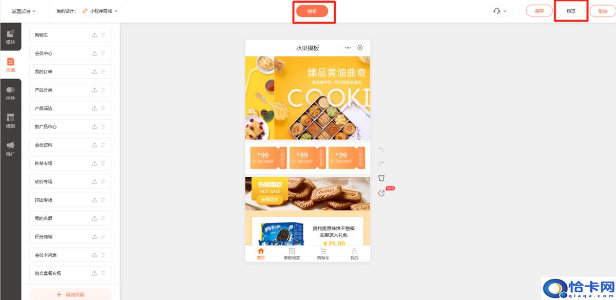 完成小程序商城模板的修正后,点击【预览】停止查看,确认无误即可提交审核等候发布上线。