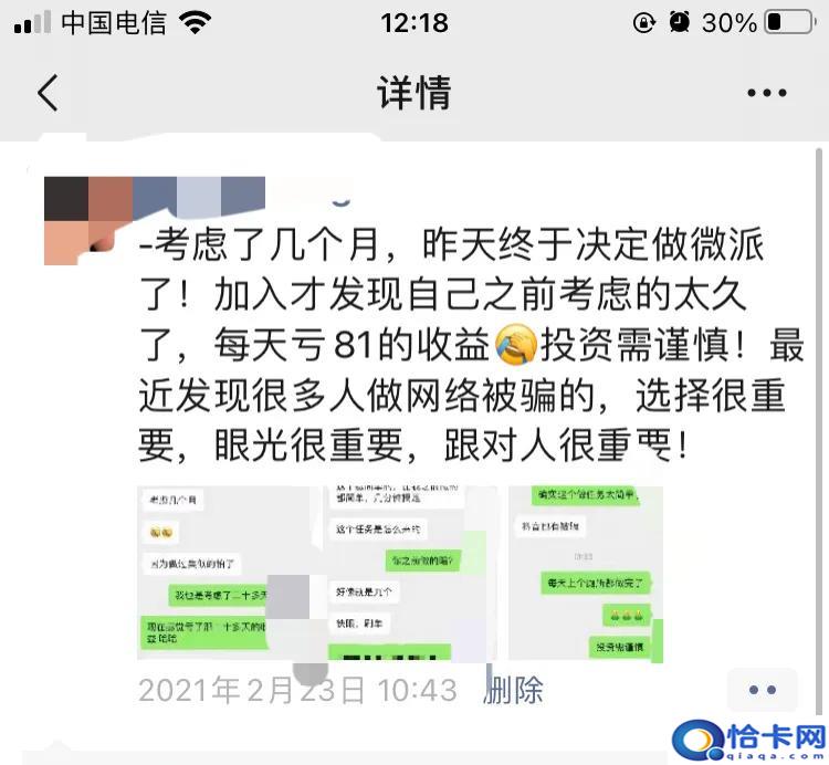2020年,偶尔间看到一个朋友在做短视频项目,每天就微信短视频点赞、评论,2-3分钟就能够完成,保底日薪81。很猎奇,便去咨询了她。这个项目的名字叫微派,要参加必需花钱购置他们的产品,分三个层次,最高层次2970元!我察看了三个多月,看到我朋友从每天的81变成891再到几千块一天,便觉得这个项目能够做,直接花2970开了一个号,2021年2.22开启了我的微派生活!历来没接触过短视频,一切都很新奇,而且的确也很简单,只需会玩手机每天都能挣到81。渐渐地,上手之后就开端发朋友圈招商,还觉得本人参加晚了,早参加的话就能多赚几千了,如今想想本人真的是傻得可笑。3月中旬开了第二个2970的高级账号,期间招了有七八个会员,包括我的闺蜜、朋友、同事、微友。3月份做了一个完好月,势头都很好,可四月份开端就各种问题频繁呈现。最开端是不能日结提现,再后来不能做任务,再后来说是公司转型……后面公司改头换面,名字改成了聚派,业务由原来的短视频点赞改成了拼团。提现刚呈现问题的时分,公司老板、高管等每天都有腾讯会议,都在大言不惭地说不会亏会员一分钱,一切人都能回本,我们都在傻傻的置信并坚持着,直到新制度呈现、APP再也不能翻开,我们才认识到问题的严重性。可能是由于第一次接触吧,不断都做好了赔本的准备。固然也没有亏,总共赚了2千左右,但是我的会员当中就只要一个人回本了!迫于市场监管局的压力,公司后面出了清退计划,没有回本的会员能够申请退费,9.30号之前会全部退完,但是这个也只不过是他们为了对付市场监管局的托词而已,到如今为止也没几人真正拿到了退款。一朝一夕,群解散了,大家也都默许了亏损,根本上如今曾经云消雾散。
