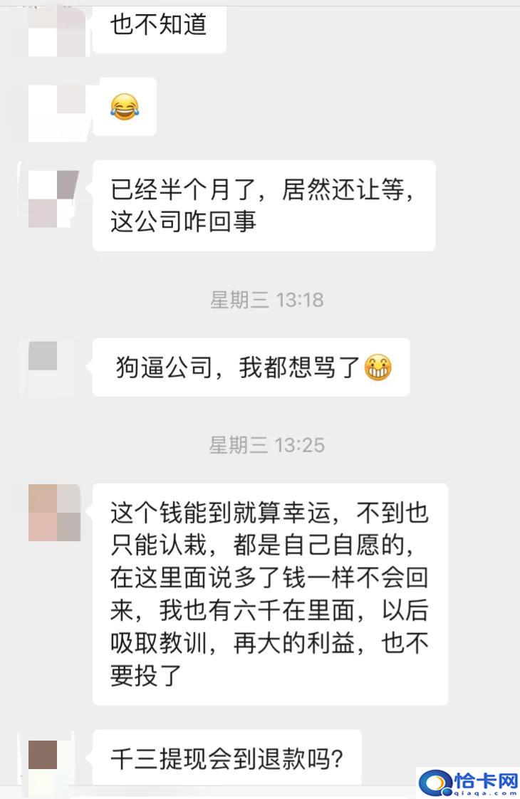 8月下旬,他们又开端换把戏,开了个新区拼团,投入最低进入由原来的500涨到1000,继续割下一波韭菜,当时还有很多人参加,并没有由于提现出问题而让他们有所觉悟!果不其然,承诺的新区提现秒到账坚持了没几天,到今天2021年12月1号为止,8.17号的老区提现和后面的新区提现,都没有到账。今天说改成提现每天千分之三,明天说要上市,等上市之后一定要给大家提现……套路,完整的套路。就这样的公司我觉得是不配上市的,上市的公司名字叫“交泰国际”,懂行的朋友能够去查一查。