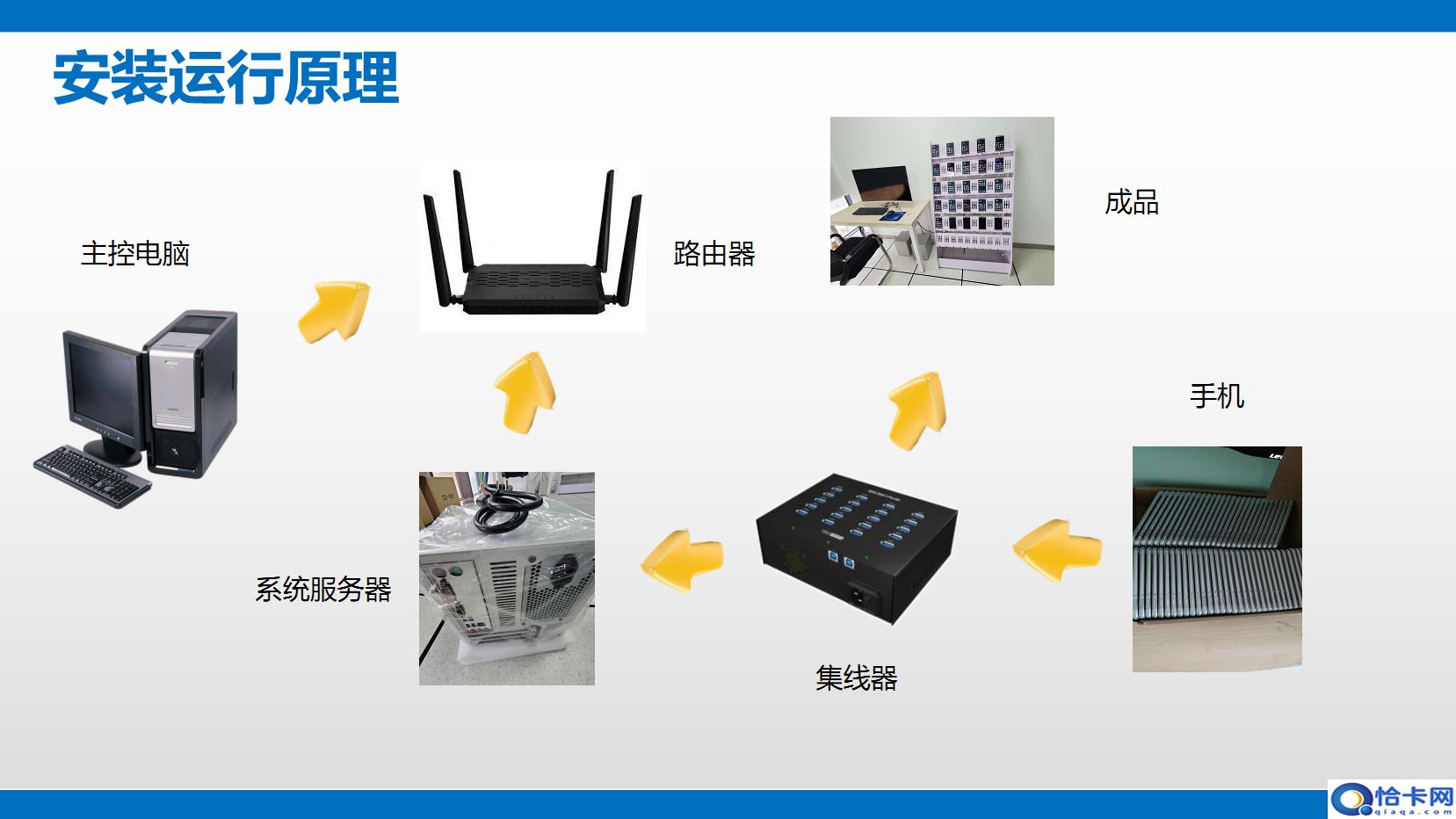 “群控”系统通常是由软件和硬件构成,硬件部分包括群控主机、HUB集线器、电脑主机和终端手机;软件部分用支持分控功能的群控系统,在本地局域网环境下即可实现手机群控