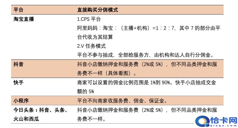 而第三方电商平台中,淘宝则要收取实际成交金额的6%作为内容场景服务费,并扣除主播佣金收入的10%作为技术服务费;有赞对CPS产品收取佣金的10%,对非CPS产品仅收取开店费用,魔筷也仅收取开店费用;拼多多和京东则不收取费用。