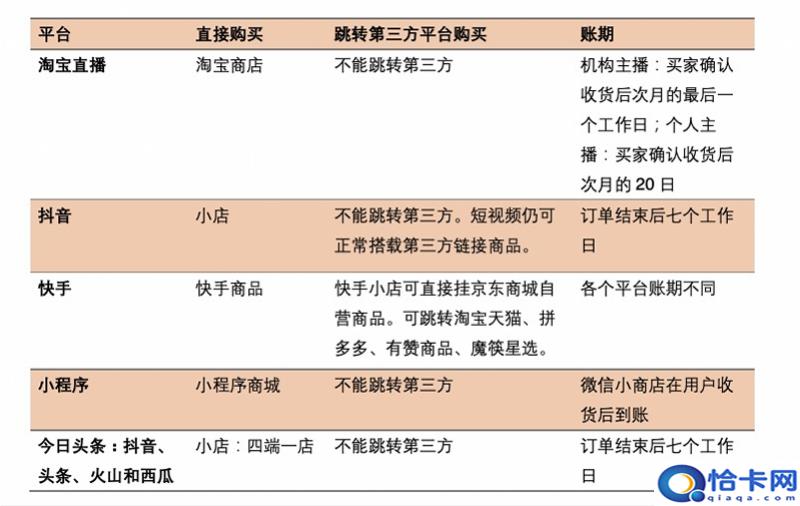 除抽成不同外,四家直播平台还对主播和商家有着不同结款账期,这也影响着交易内闭环的成交活跃程度。