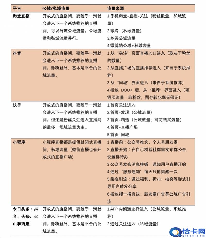 从流量来源看,抖音直播仍以公域流量为主,快手直播以私域流量为主,淘宝直播体现出私域流量和公域流量共存的特征,微信直播则是极强的私域流量加持。
