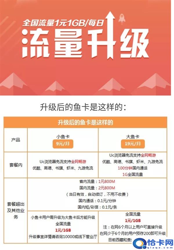 此前,小鱼/大鱼卡的套餐外资费分别是省内1元800MB和国内2元800MB。