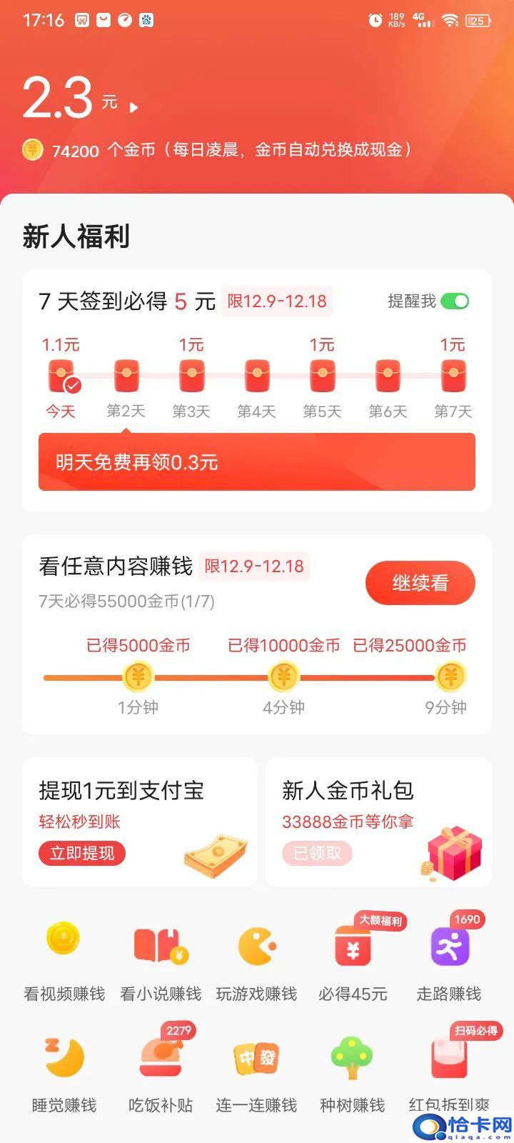 这是一款我个人非常推荐的看视频赚钱软件,提现门槛也比较低。刚开始福利非常多,有填写邀请码领现金,做任务得金币。(金币兑换成现金的比例大概是10000:1)