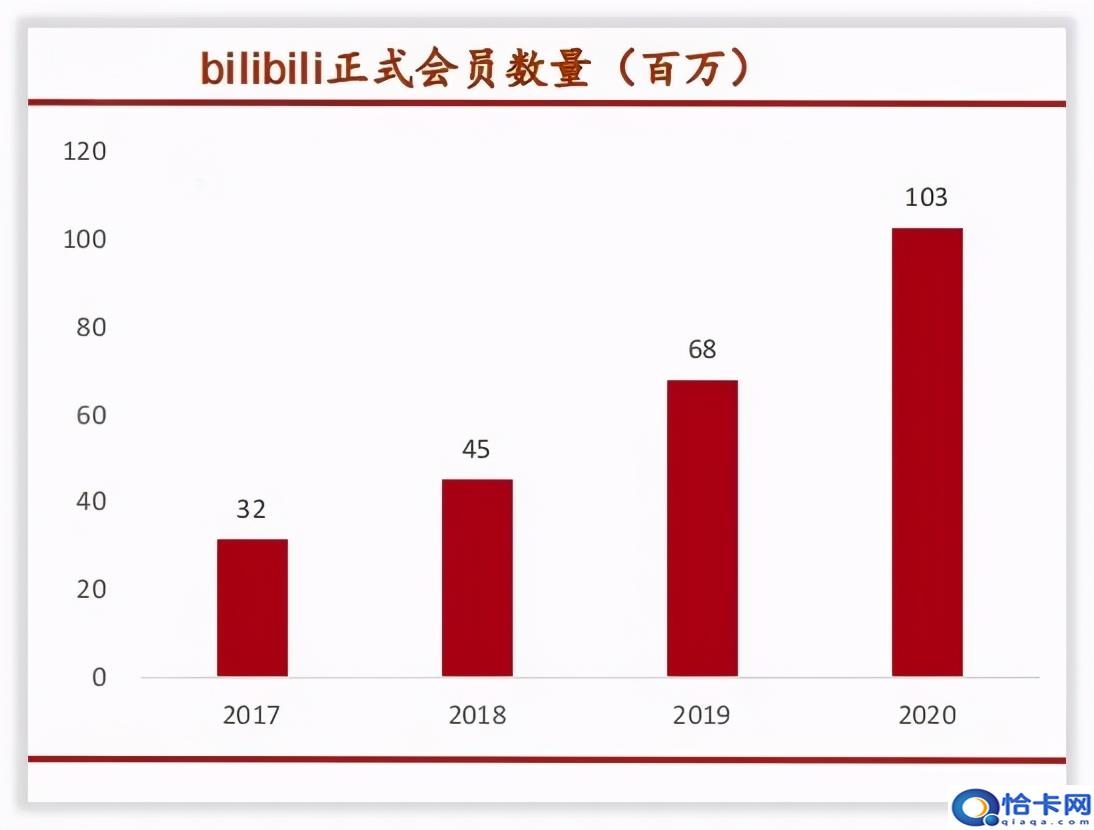 2020年活跃用户数1.97亿,会员数1.03亿,弹幕总量由2019年的10亿条上升至2020年22.6亿条。