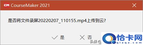 4、提示你要不要把录屏文件上传到云,如果你取消的话,软件就会打开录屏文件的存储目录,就看得到你录制下来的格式为.MP4的视频文件