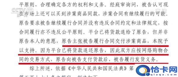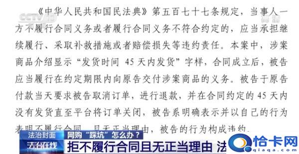 北京互联网法院法官 曾智湄:按照平台的这个规则,365天之后被告没发货,原告也没有这个取消这个订单,那么这个订单就自动按照平台的这个规则就关闭了,关闭了之后原告就向法院起诉,要求这个被告履行合同,要求他履行发货的义务。